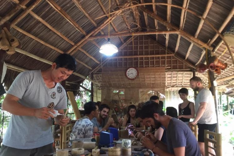 Disembark from the basket boat, a short cycle take you to our destination today – an organic farm run by the village seniors. Here you will be welcomed by local farmers who will happily share with you their story about this community-based project. Following an interesting conversation, you’ll be invited to join in their daily work, such as applying organic manure, making organic pesticides to control and prevent pests, cultivate the soil for planting and watering.
