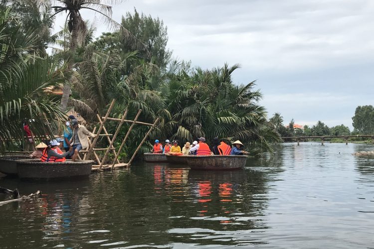 08.30 (or earlier in summer time) – Set off on a half-day tour to Cam Thanh rural life. You’ll first take a short warm-up pedal through picturesque villages where life moves at a slower pace, passing rice paddies, local orchards and seeing the locals at work in the fields. After around 1 hour, you’ll arrive at a village pier and now it’s time to embark for a short ride in a traditional basket boat wandering through the channels of Nipa palms mangrove (aka coco-palm)